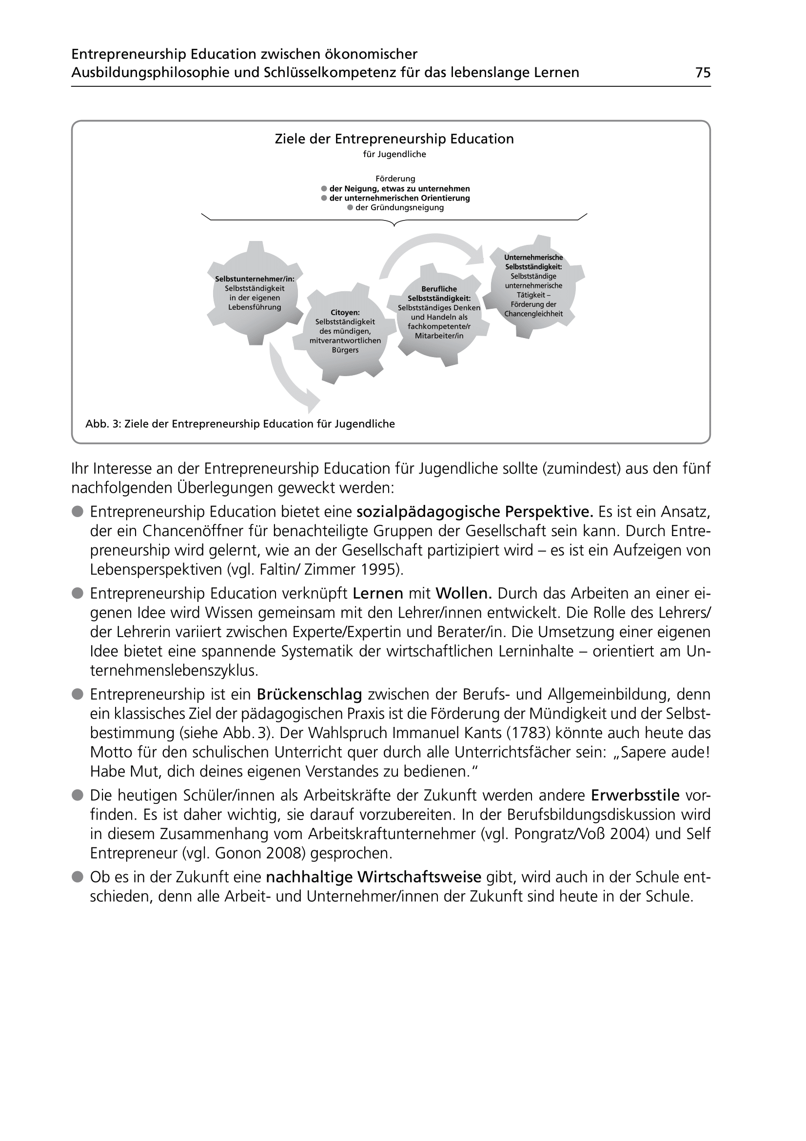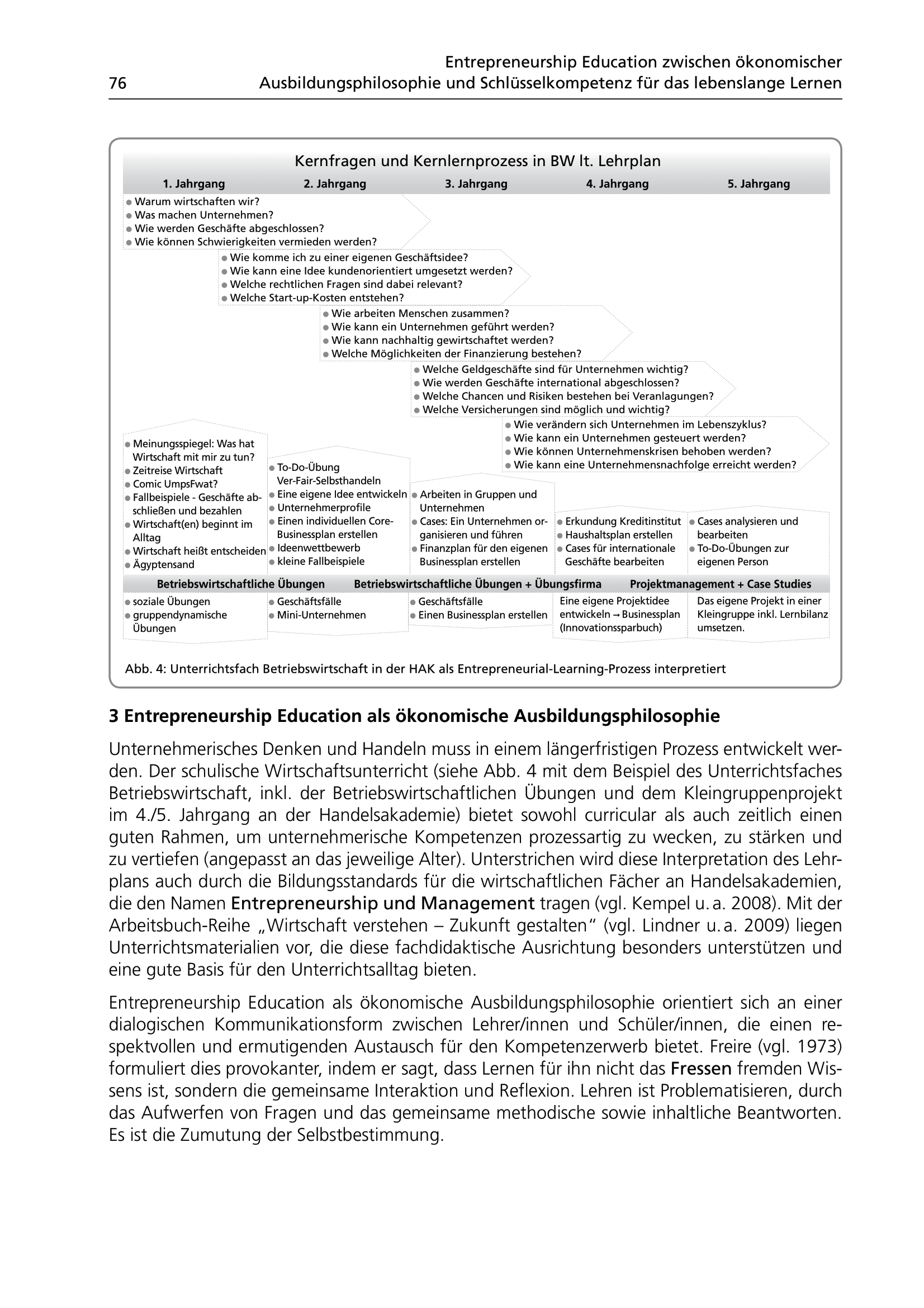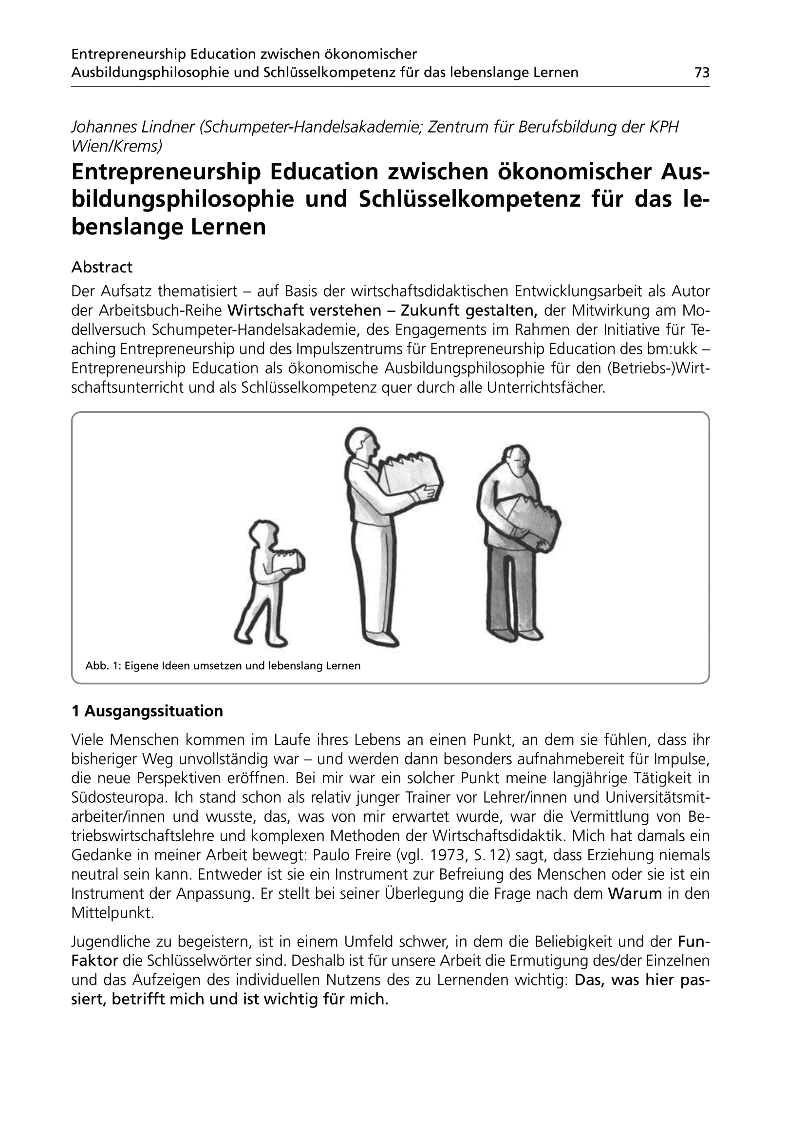 The article addresses entrepreneurship education as an economic education philosophy for (business) economics lessons and as a key competence across all subjects.