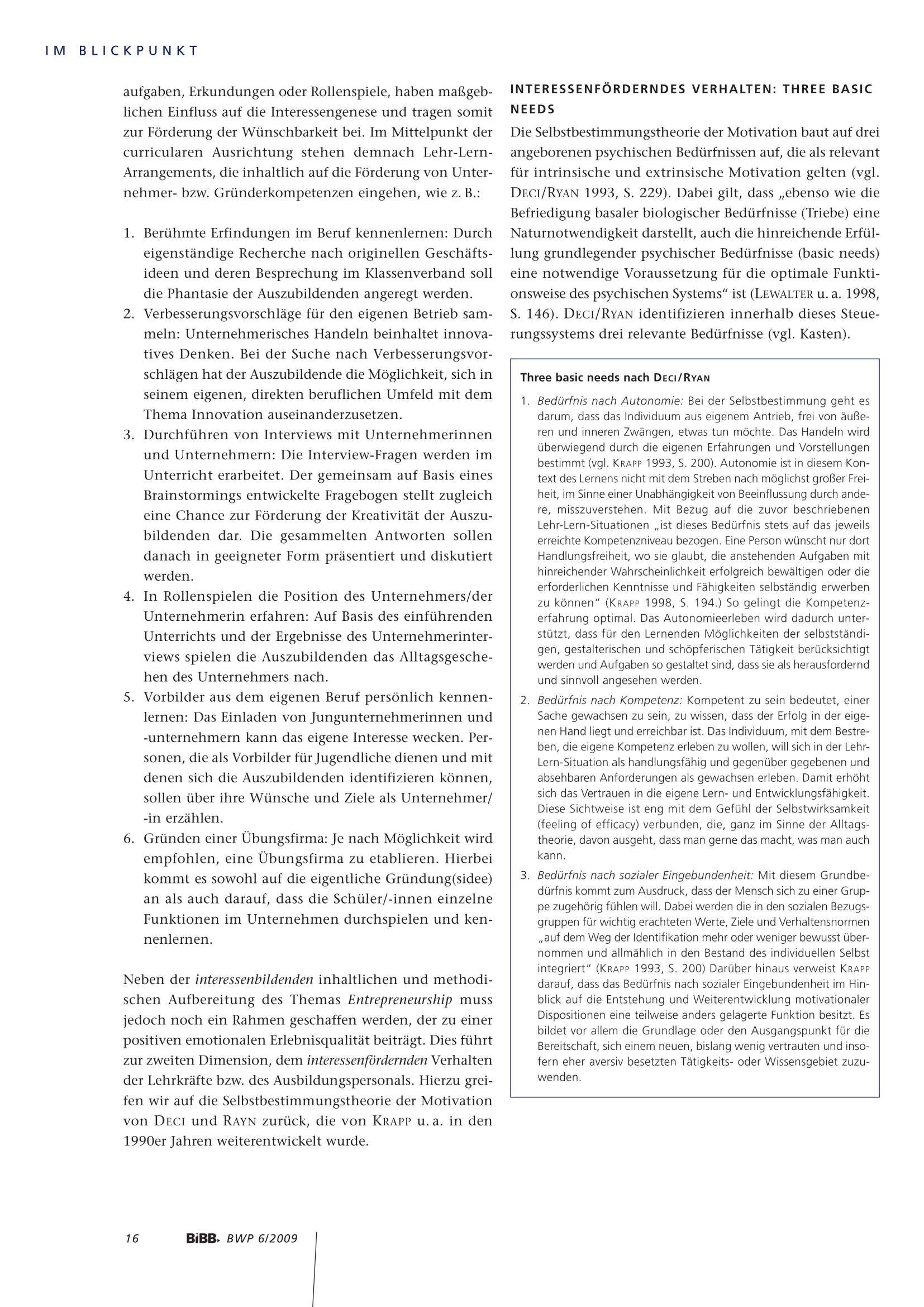 There is more to entrepreneurship education than just the idea of good start-up training. Shaping an individual's career path and thus the possibility of successful participation in working life is becoming increasingly complex. This is now a challenge for every young adult at the start of their professional career. This article provides a general introduction to the topic and presents a didactic model for promoting entrepreneurship in vocational training.