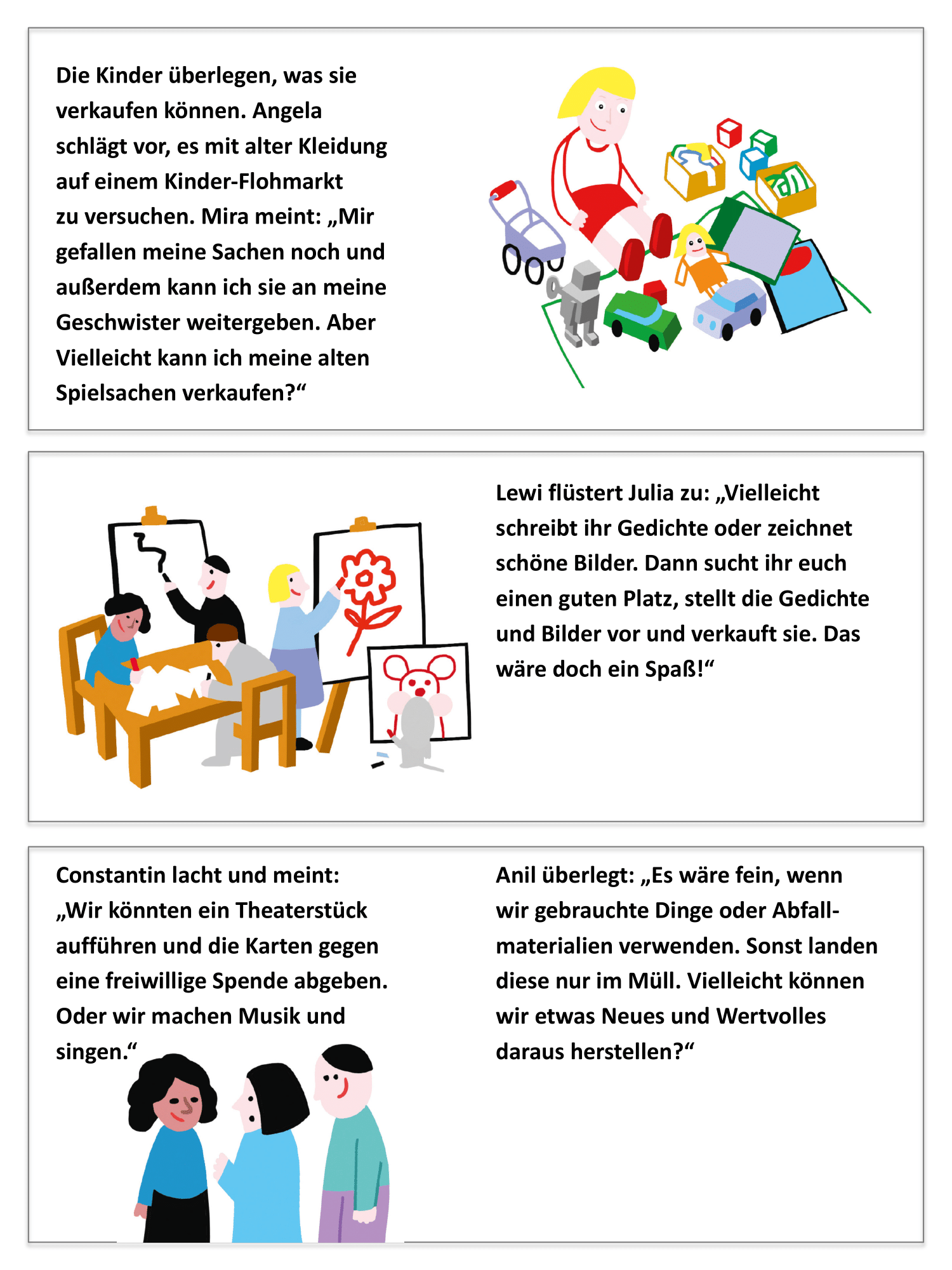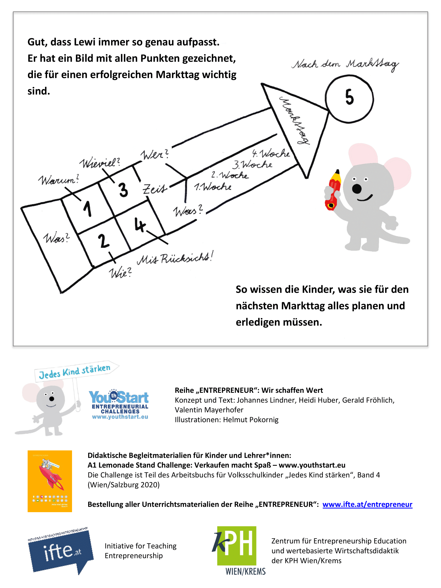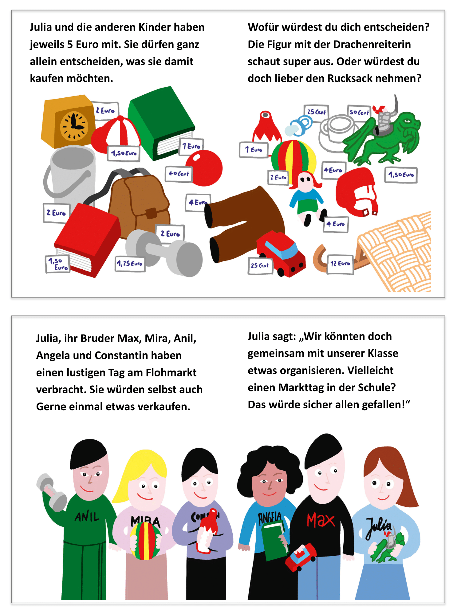 Julia und Lewi erfahren Schritt für Schritt wie man ein Verkaufserlebnis auf einem Markttag vorbereitet und lernen dabei kindgerecht das nachhaltige Geschäftsmodell kennen.