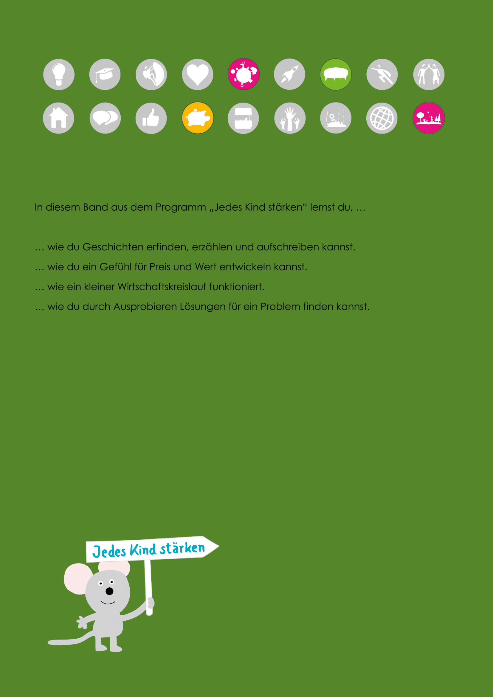 Finanzielle Allgemeinbildung wird mit ‚Mein Preis- und Wertgefühl entwickeln‘ und ‚20 Euro auf der Spur‘ vermittelt: Was kosten Dinge? Was macht sie wertvoll? Wie funktioniert Wirtschaft? Wo ist mein Platz darin?