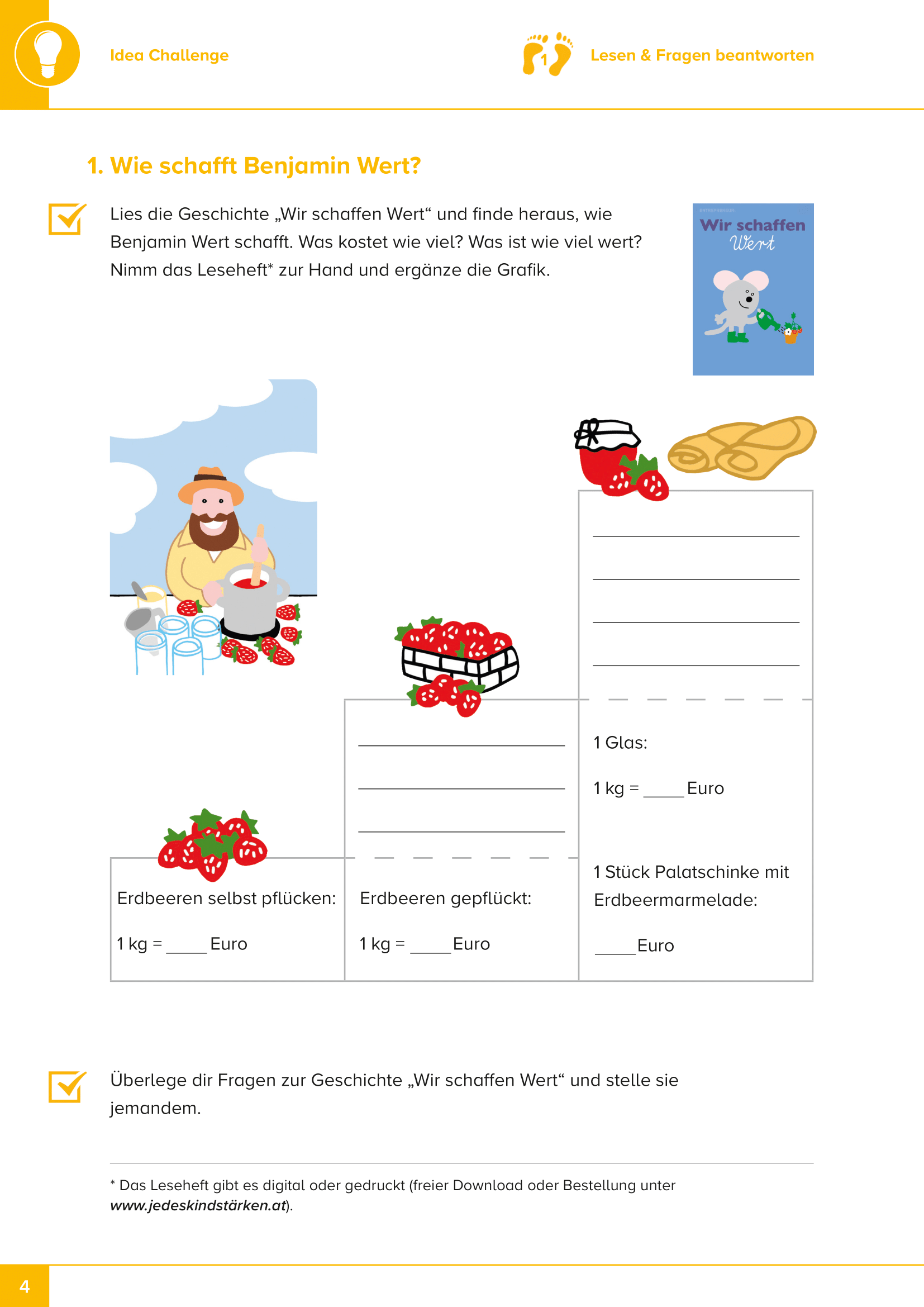 Dieses Arbeitsheft ist für die 4.Klasse konzipiert und bereitet u.a. auf den im Lehrplan empfohlenen Markt-Tag vor: